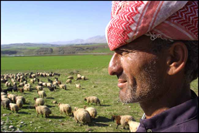 | A Kurdish shepherd tends his flock in northern Iraq near the
